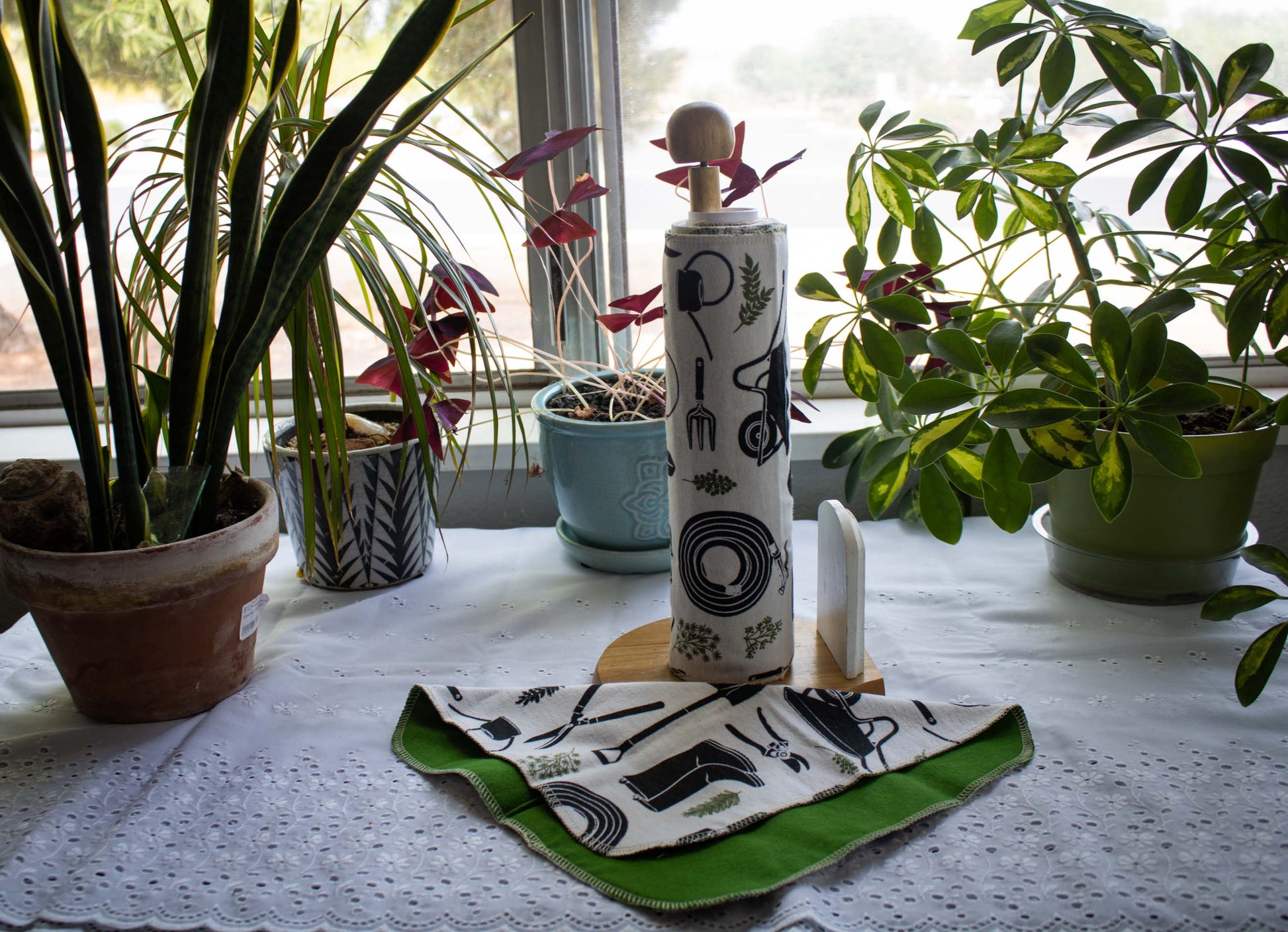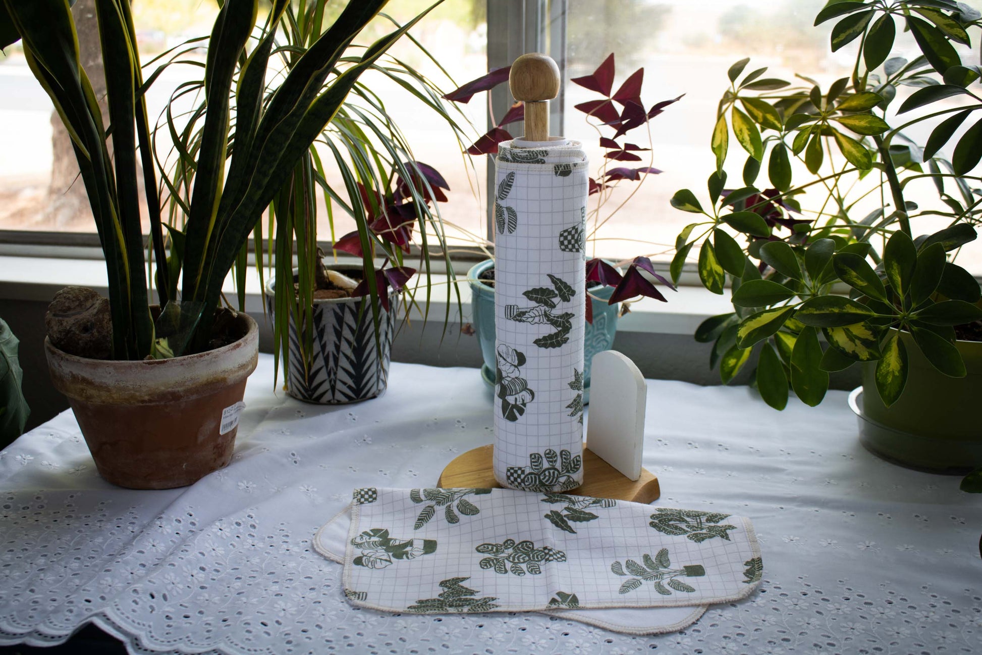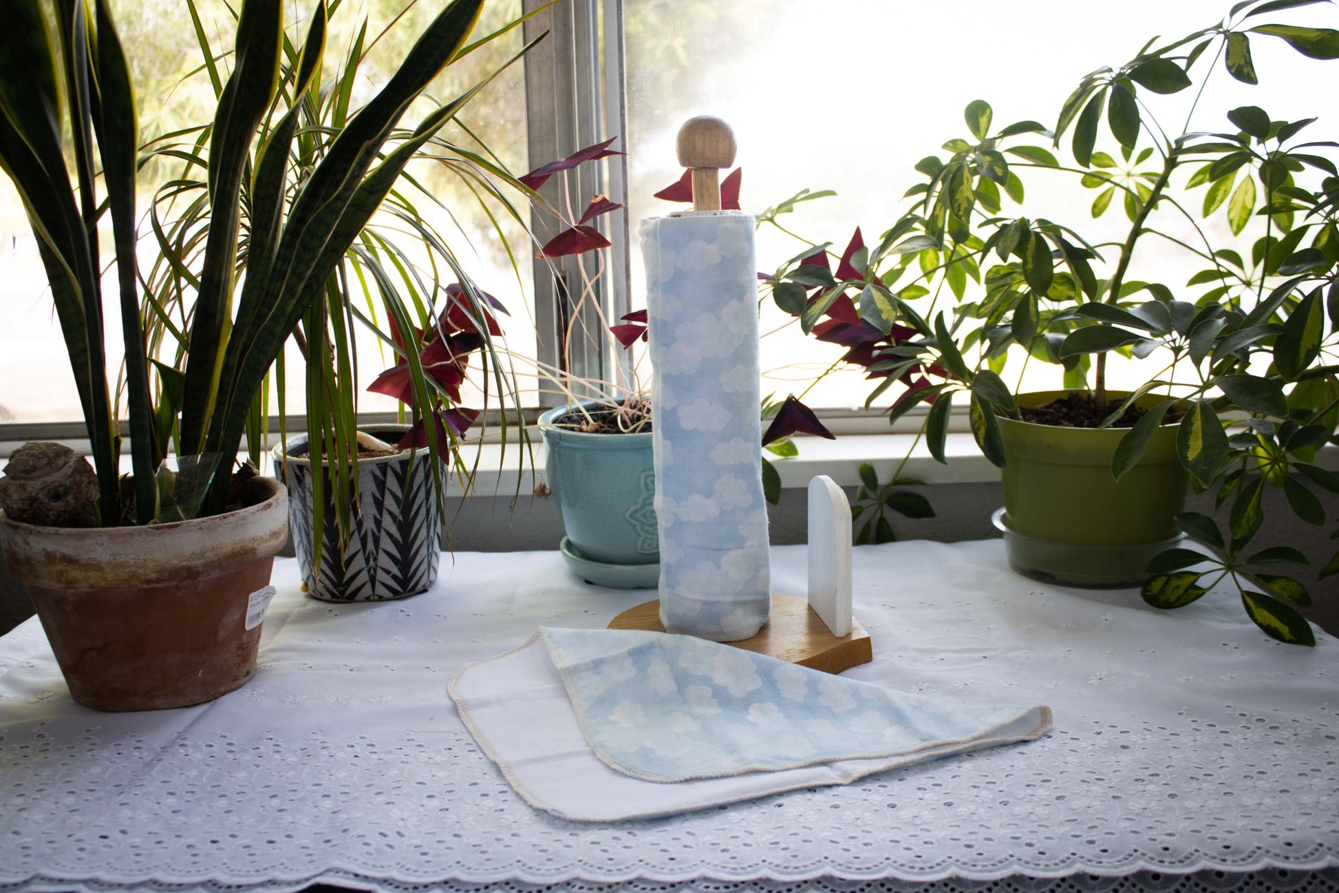 Paper towel rolls are made of 100% cotton. Roll them together and use them like regular paper towels without waste! Sold in packs of six.